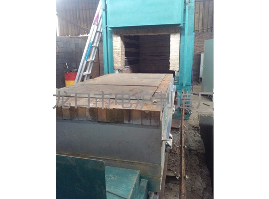 本電阻爐由爐殼、爐襯、臺車、臺車行進機構、臺車翻轉機構、加熱元件、爐門、爐門升降機構等幾大部件組成,通過專用的控制柜及儀表指示,控制電爐溫度。爐襯采用輕質耐火磚砌筑與爐殼間貼有耐火纖維氈,因而具有空爐損耗小、升溫快,表面溫度低的特點,有較好的節能效果。